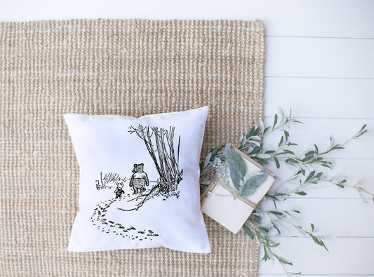 Winnie The Pooh Walking Through The Woods | Black, White | Piglet | Decorative Pillow | Custom Designed | Made In The USA