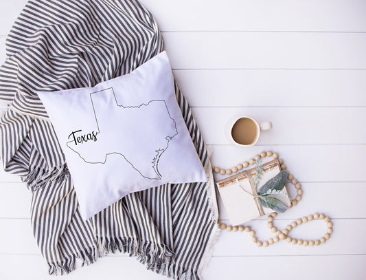 Map of Texas with Name Written In Calligraphy | Black and White Bird | Decorative Pillow | Custom Designed | Made In The USA