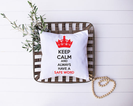 Keep Calm And Always Have A Safe Word | Black, White, Red | Crown | Decorative Pillow | Custom Designed | Made In The USA