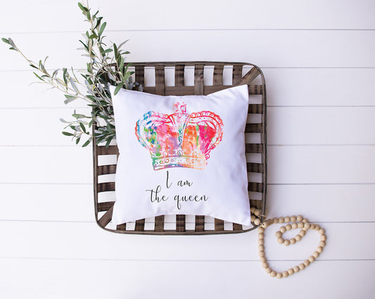 I Am The Queen | Black, White, Rainbow | Crown | Decorative Pillow | Custom Designed | Made In The USA