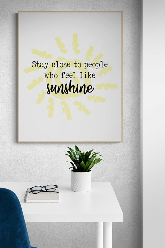 Inspirational Quote Art Print | Stay Close To People Who Feel Like Sunshine | Motivational | Living Room | Home Decor | Sun Poster