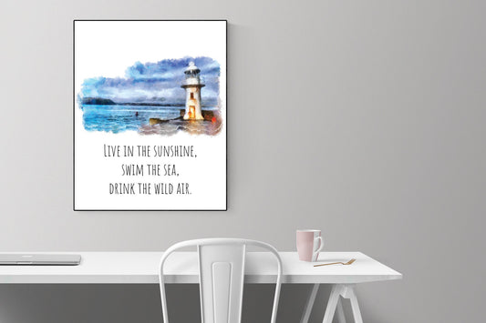 Live In The Sunshine | Swim In The Sea | Drink The Wild Air | Ralph Waldo Emerson Quote | Art Print
