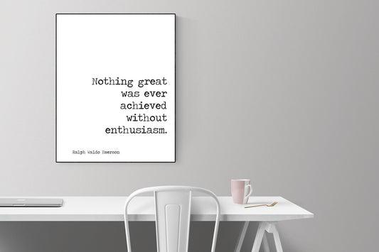 Nothing Great Was Ever Achieved Without Enthusiasm | Ralph Waldo Emerson Quote | Art Print