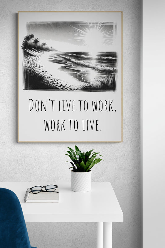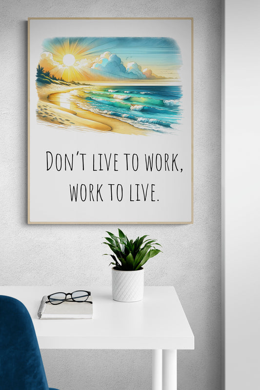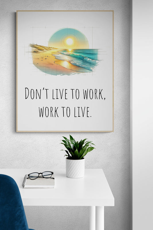 Funny Motivational Quote Art Print – Don’t Live to Work, Work to Live | Inspirational Typography Poster | Home Decor Wall Art
