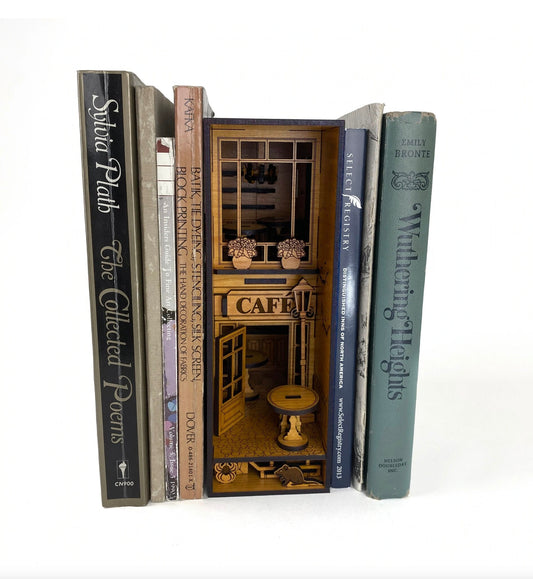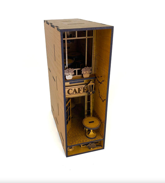 Cafe Book Nook with Friendly Creatures | Assembly And Painting Required | Bookshelf Nook Insert