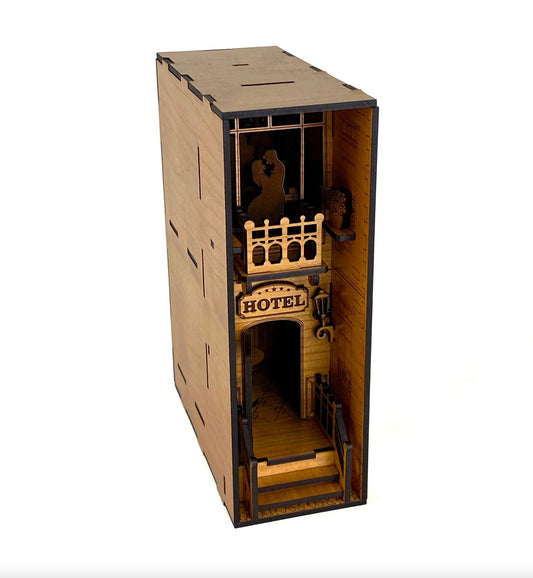 Book Nook Hotel with Decorative Balcony Scene | Assembly And Painting Required | Bookshelf Nook Insert