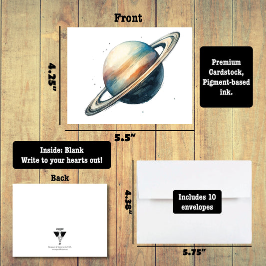 Space Themed Planets Watercolor Happy Birthday Cards | Set of 10 Letters | Blank Inside | High-Quality Card Stock with Envelope