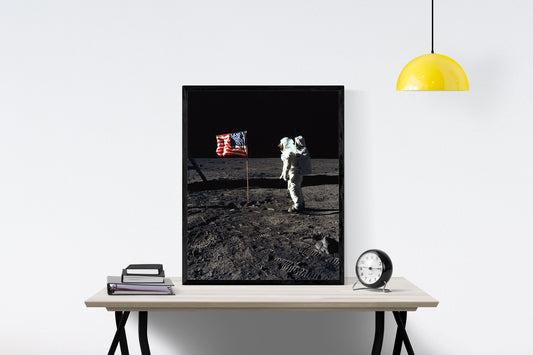 Earth's Moon | NASA JPL | Buzz Aldrin Saluting The Flag | Lunar Art Print | Surface of the Moon | Apollo 11 | Neil Armstrong | Saturn V
