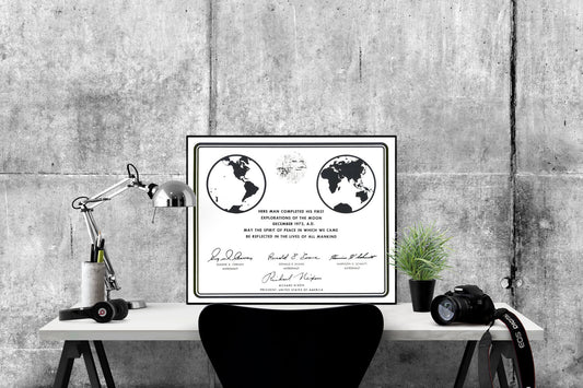Apollo 17 Plaque Reproduction Art Print | NASA Moon Exploration Wall Home Decor | Historic Space Mission | Astronomy Astronaut Poster