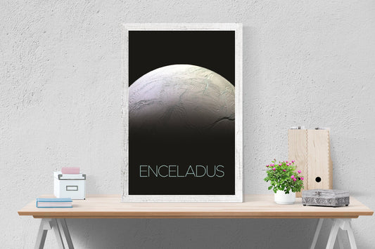 Enceladus Moon Art Print | NASA Art | Space Artwork | Solar System Art | Saturn Poster | Solar System Print | Icy Moon Artwork