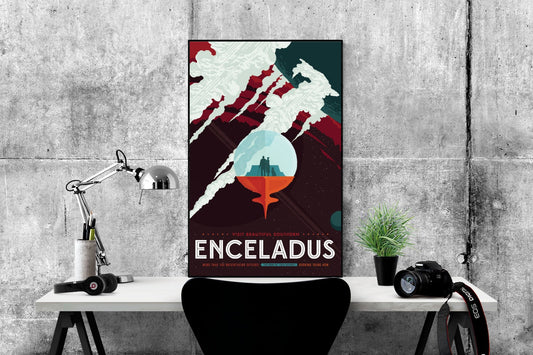 NASA Enceladus Travel Poster | Saturn | Moon | | Illustration | Art | Wall Art | Artwork | Visions Of The Future