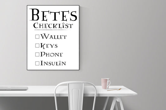 Diabetes Art Print | Diabetes Checklist | Type 1 & 2 Diabetes Poster | T1D