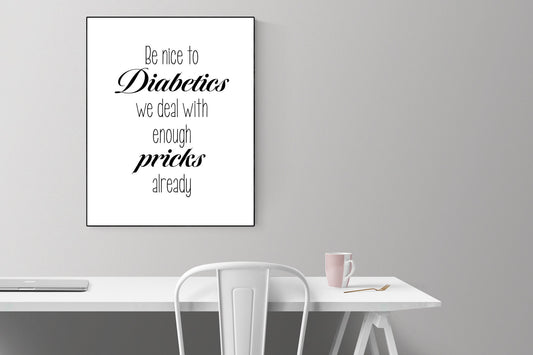 Diabetes Art Print | Be Nice To Diabetics | Type 1 & 2 Diabetes Poster | T1D